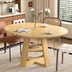 · Extra Large Storage Space: The cross-shaped base of the large round kitchen table has 1 tier storage shelf, 20.55 inches wide, perfect for organizing tableware and kitchen essentials, helps keep the tabletop clean and tidy, while providing ample seating and legroom for diners, its compact design makes it ideal for kitchens and dining rooms as well as apartments