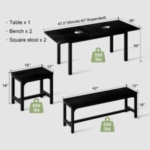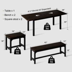 The proposed T-shaped metal center pole can make the stool legs more stable and firm, and the bench and square stool can bear up to 550 pounds.