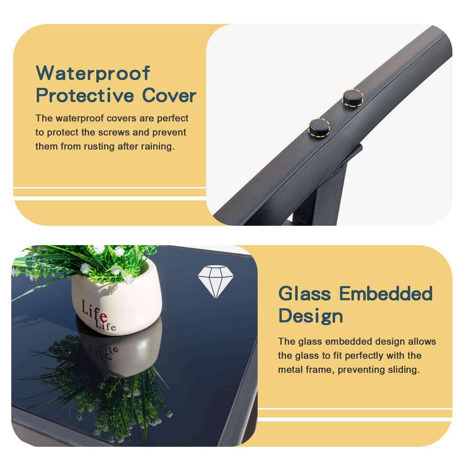 · Powder-Coated Steel: This outdoor dining set are made of high-strength steel and double-layer construction to ensure stability and weighing capacity. The steel is wrapped by a special powder coating that features excellent weather and corrosion resistance. Premium materials ensure that this furniture set will last for a long time