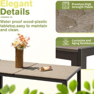 · Large Tabletop: The large 59*35 inch tabletop allows you to enjoy a variety of food and drinks. The surface of the table is made of faux wood plastic, and the wood grain makes the table more textured. The specially coated table top is weather resistant, making the table more suitable for outdoor use