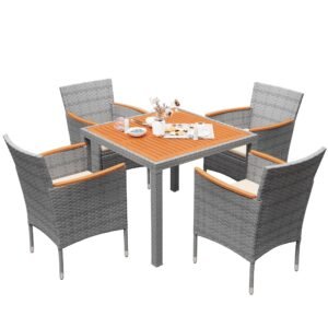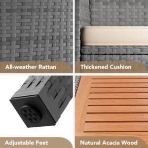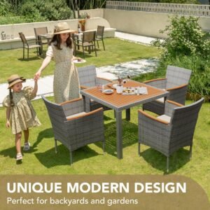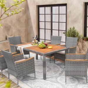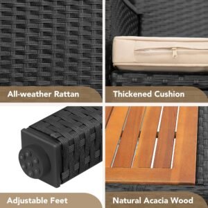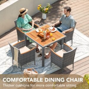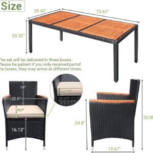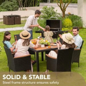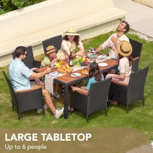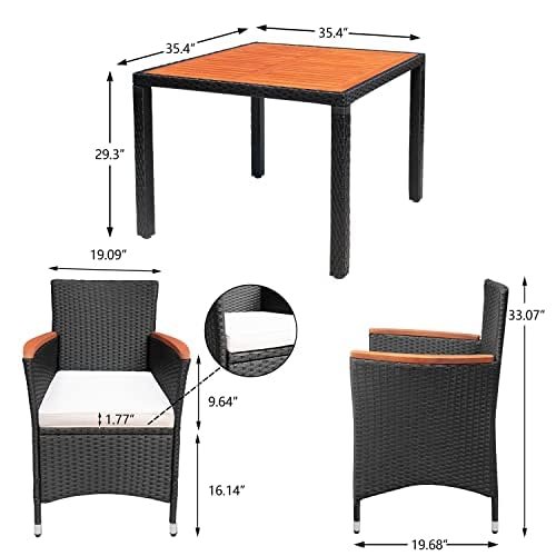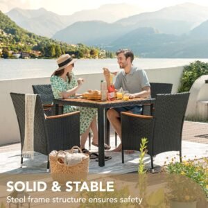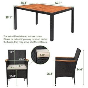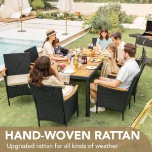 YOSIMFUR Dining Sets 9 Pieces Wicker Outdoor Dining Table and Chairs Set with Acacia Wood Table Top and Widened Armrests for Backyard, Garden, Deck (Black)