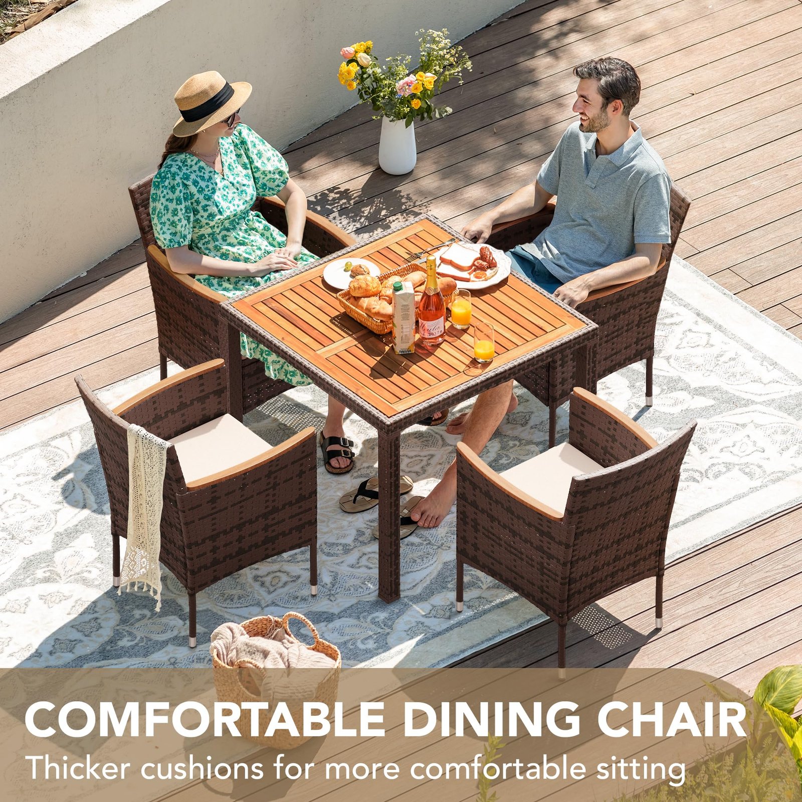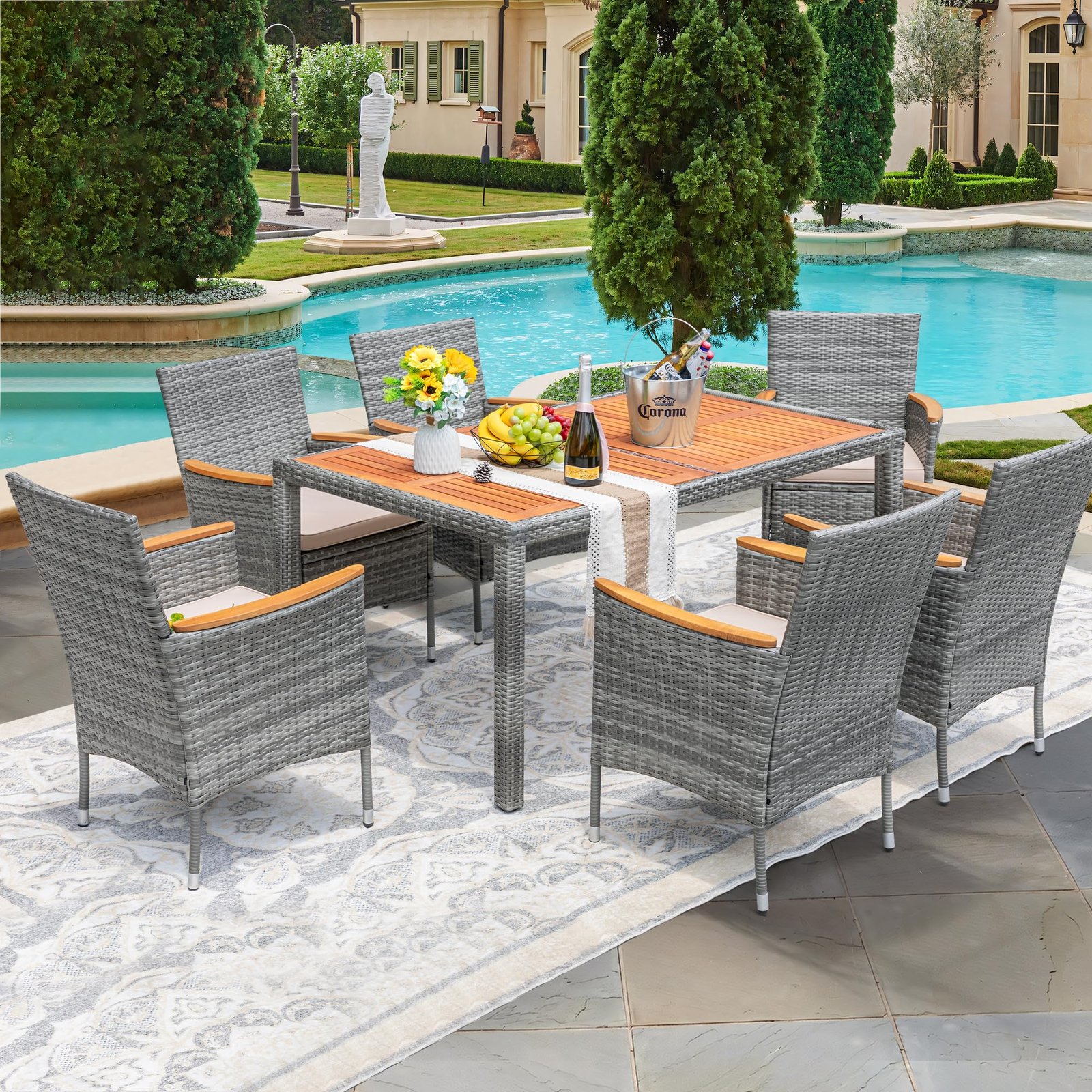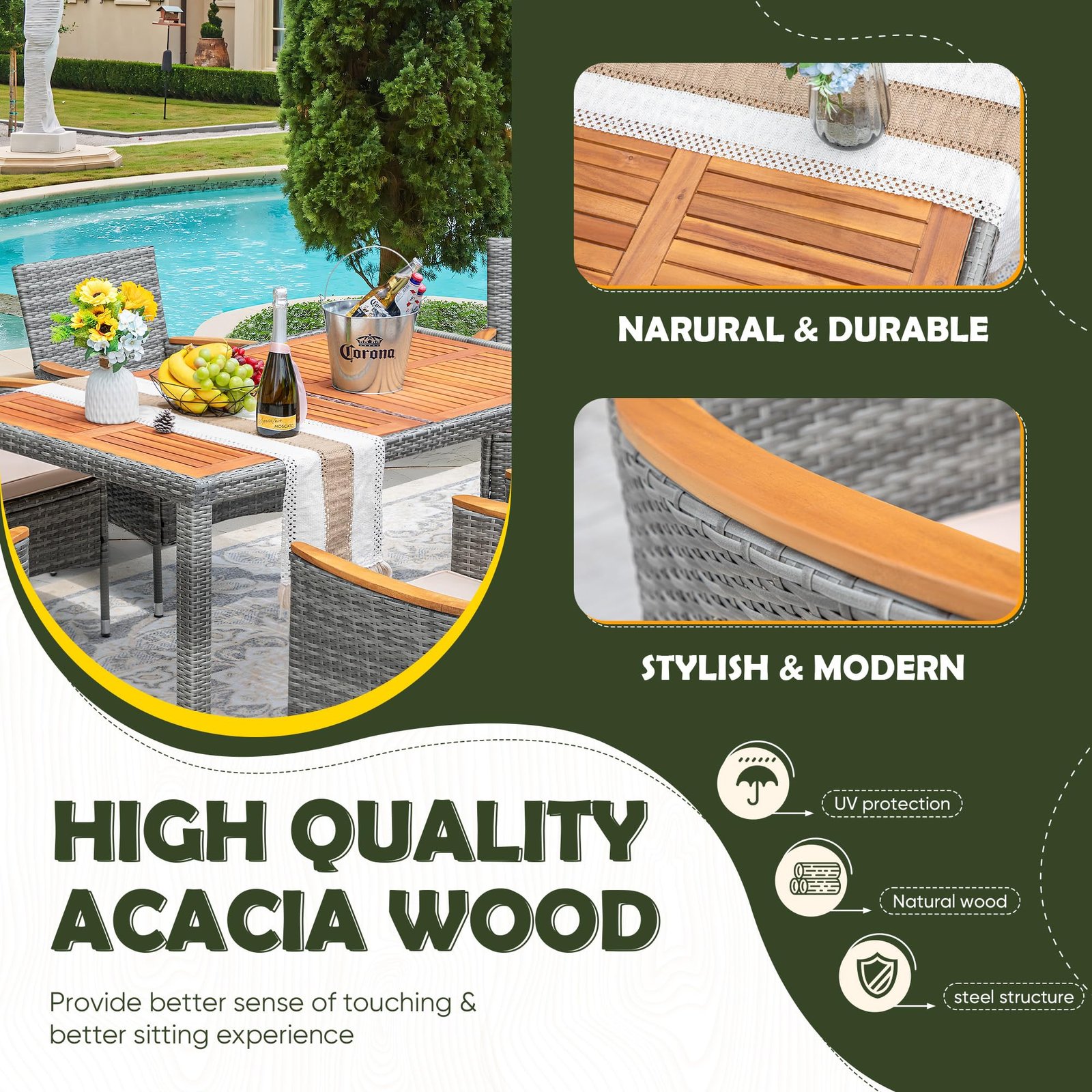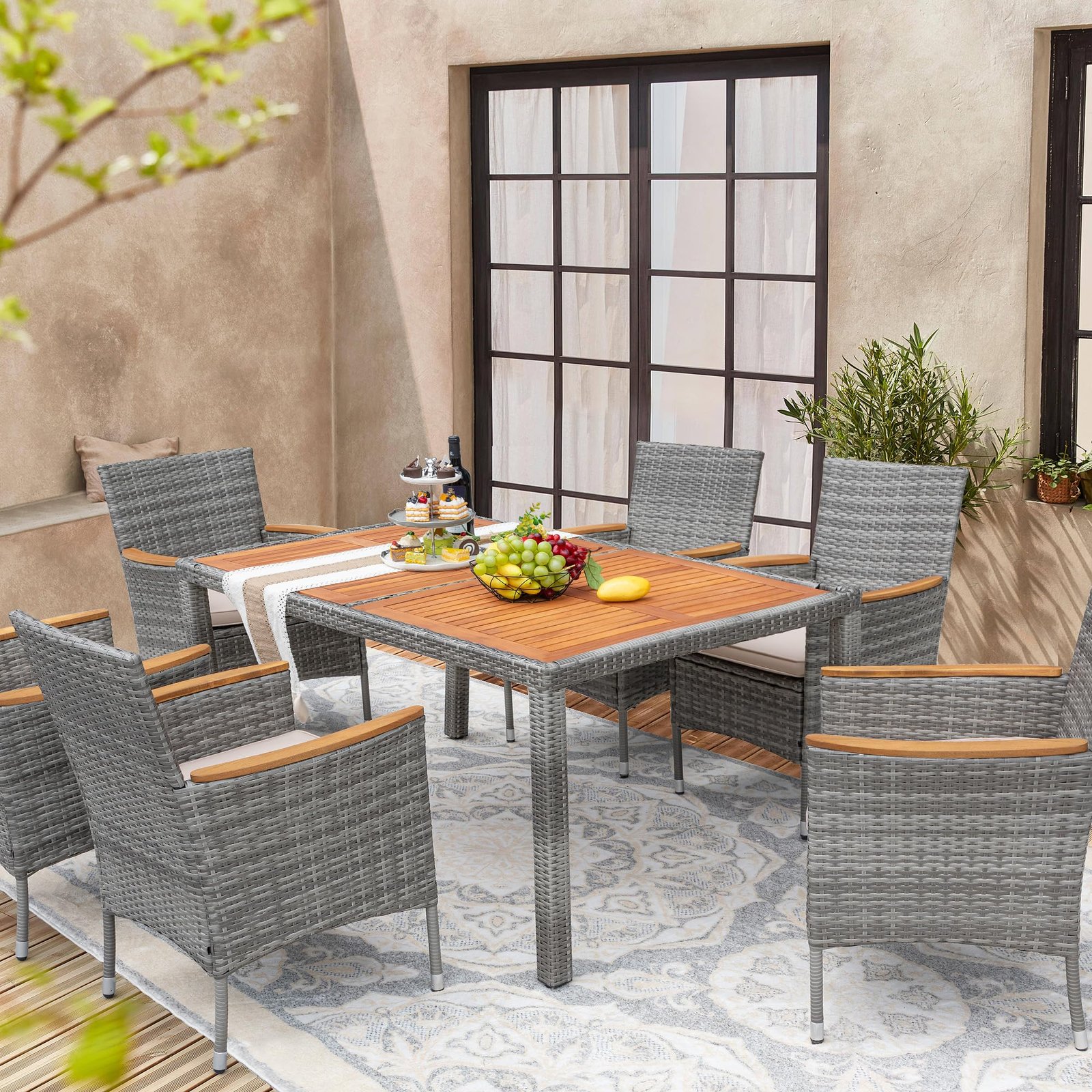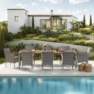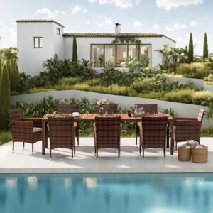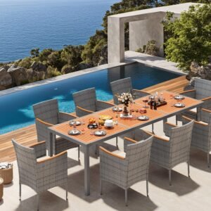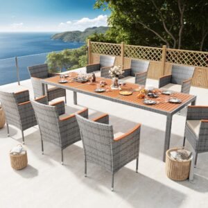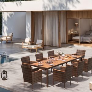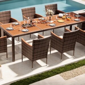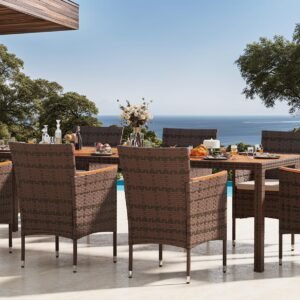 · Natural & Beautiful: The classic patio table and chair set is the perfect addition to your outdoor space. Devoko outdoor dining set consists of 1 table and 8 chairs. Perfect for parties or relaxing with family and friends on the garden or terrace.