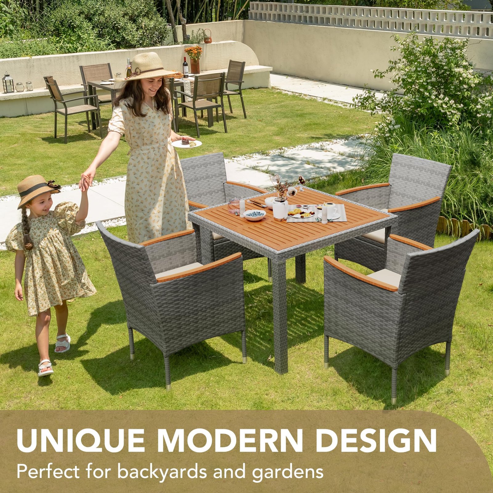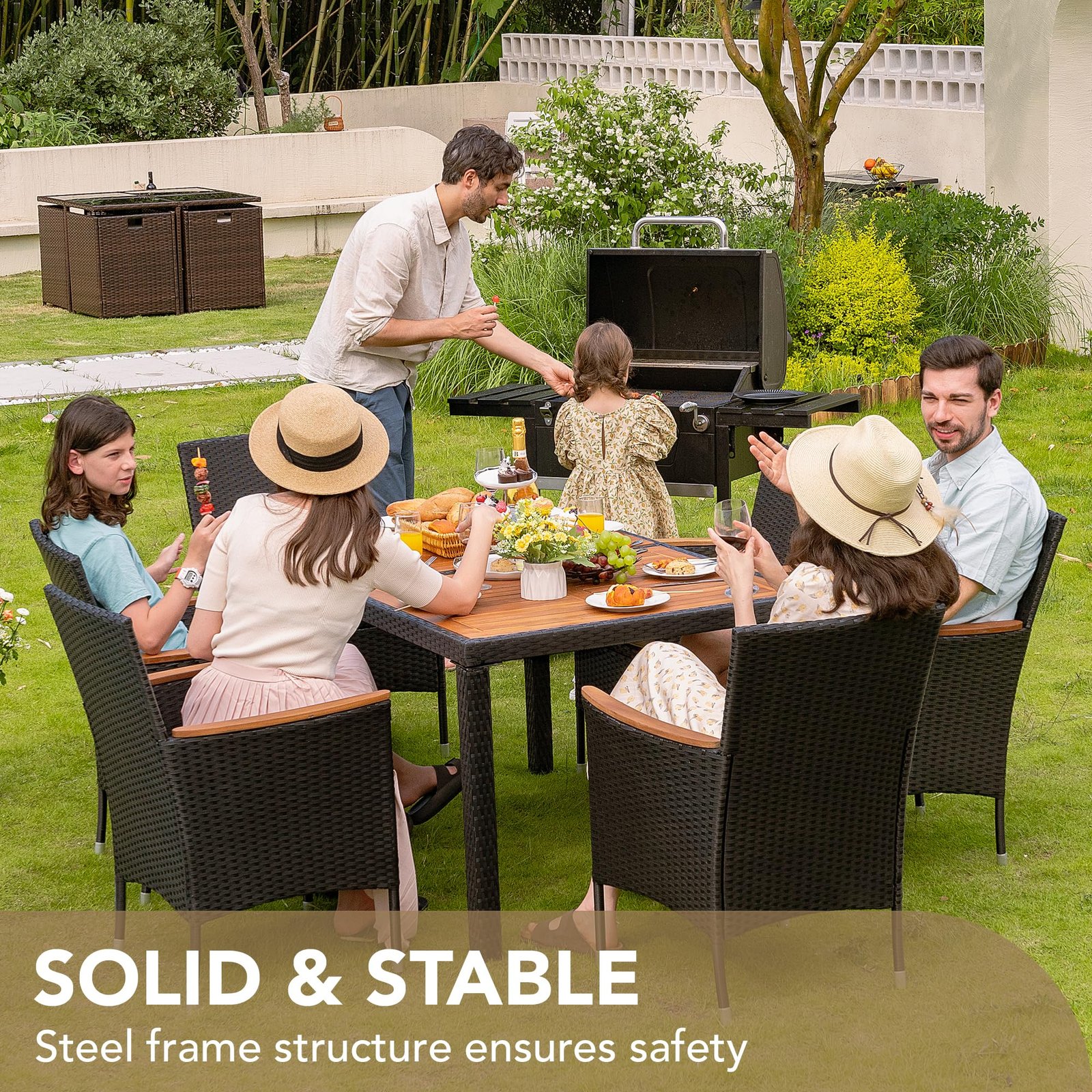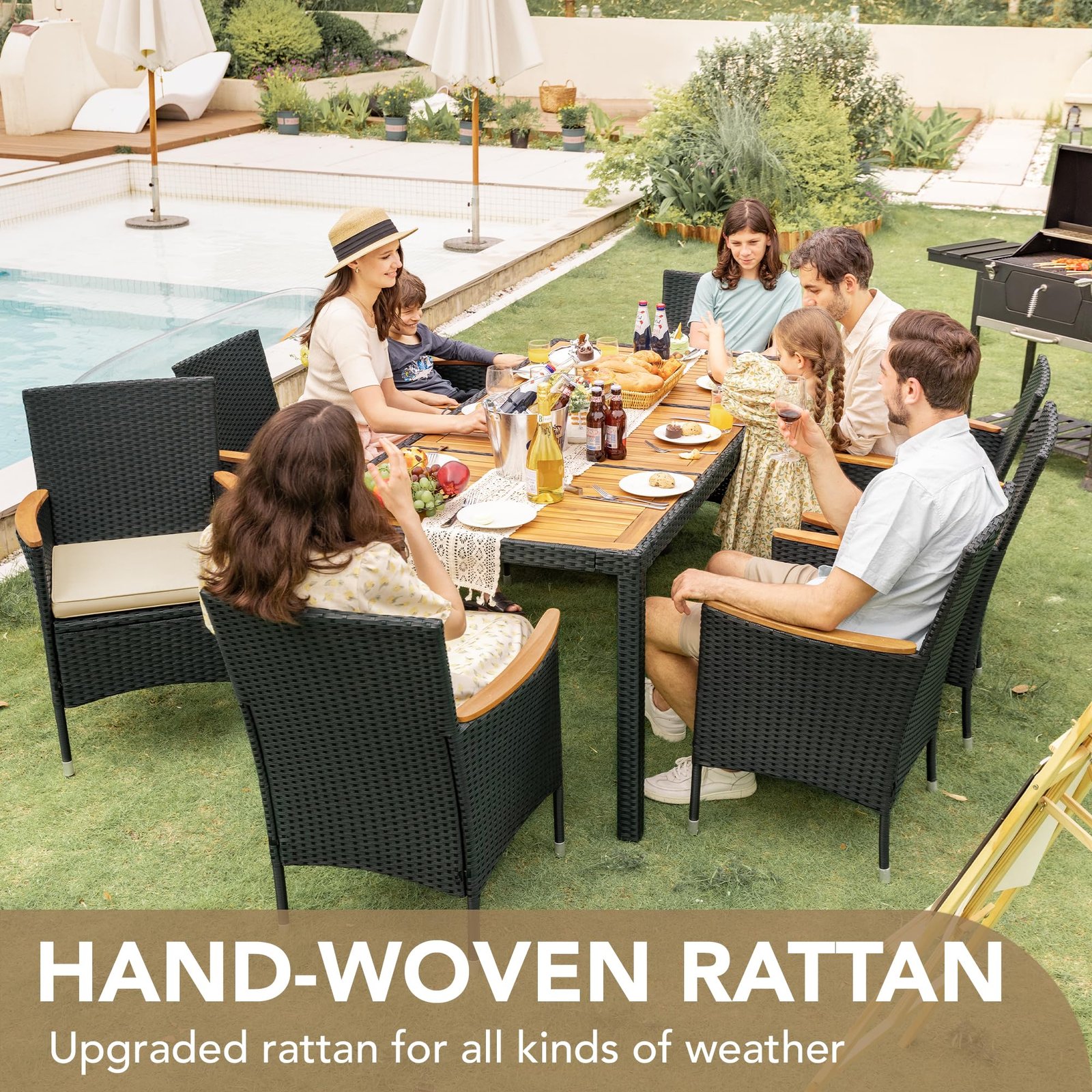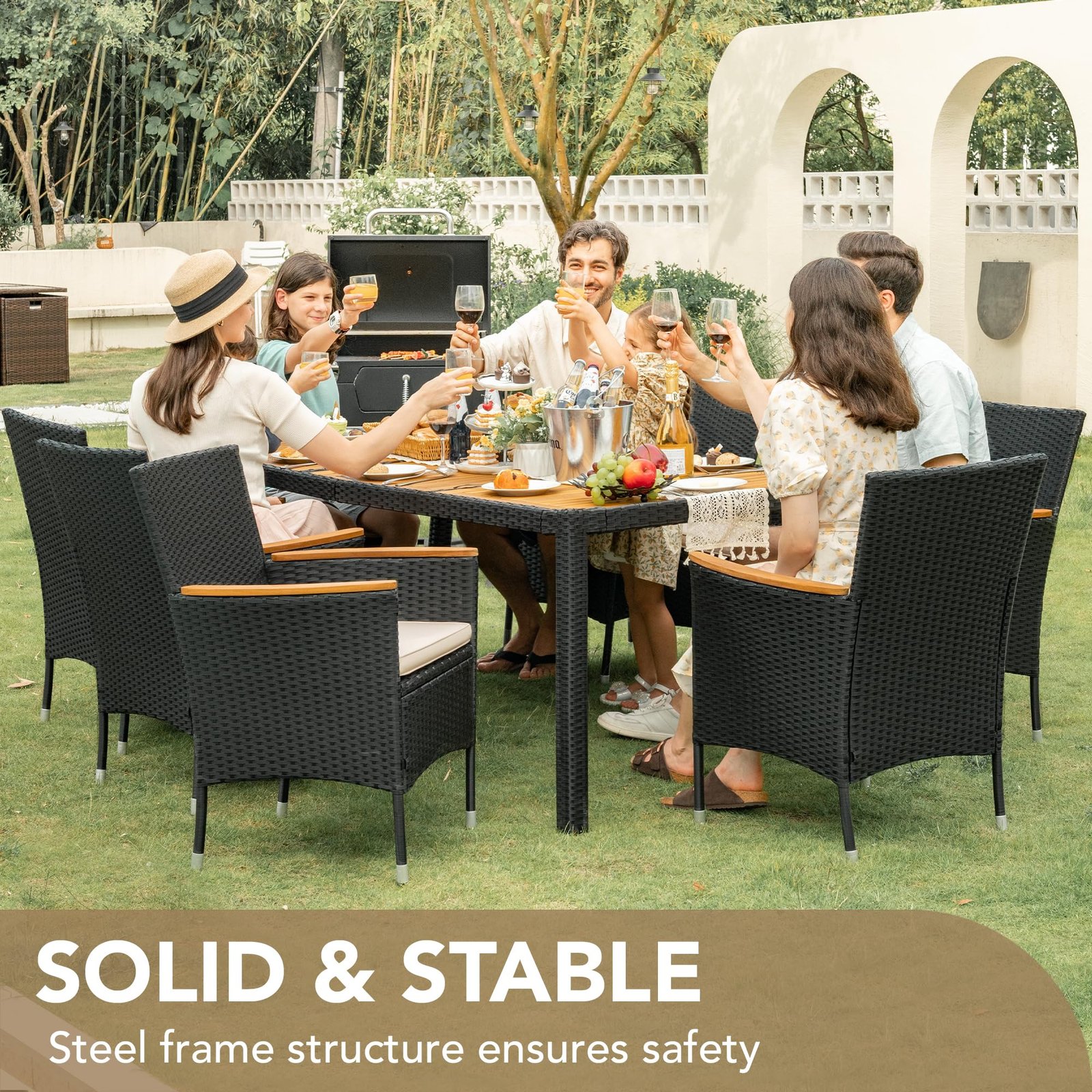 · Natural & Beautiful: The classic patio table and chair set is the perfect addition to your outdoor space. Devoko outdoor dining set consists of 1 table and 8 chairs. Perfect for parties or relaxing with family and friends on the garden or terrace.
