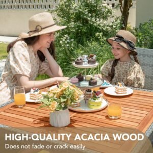 · Acacia wooden table top: The large Acacia wooden table top provides plenty of space for food. The treated Acacia wood has strong anti-corrosion ability and is not easy to crack and deform. The steel frame provides sufficient strength and stability.