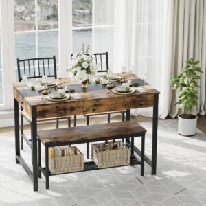 Crafted with sturdy industrial iron legs and premium hardwood tops, this dining set delivers both durability and elegance. The scratch-resistant surfaces allow for effortless cleaning, while the balanced design ensures lasting stability—perfect for daily use without compromising on style.